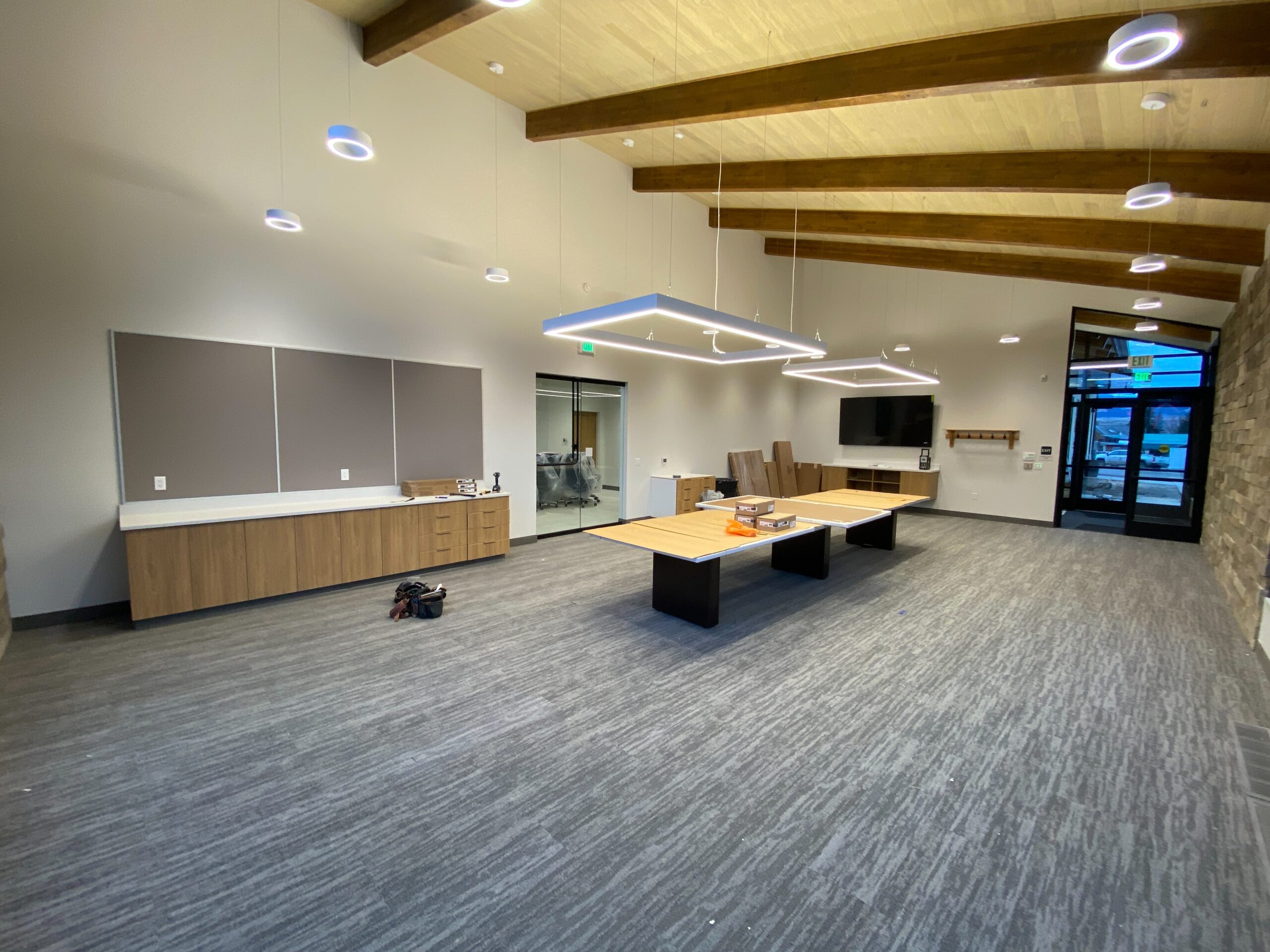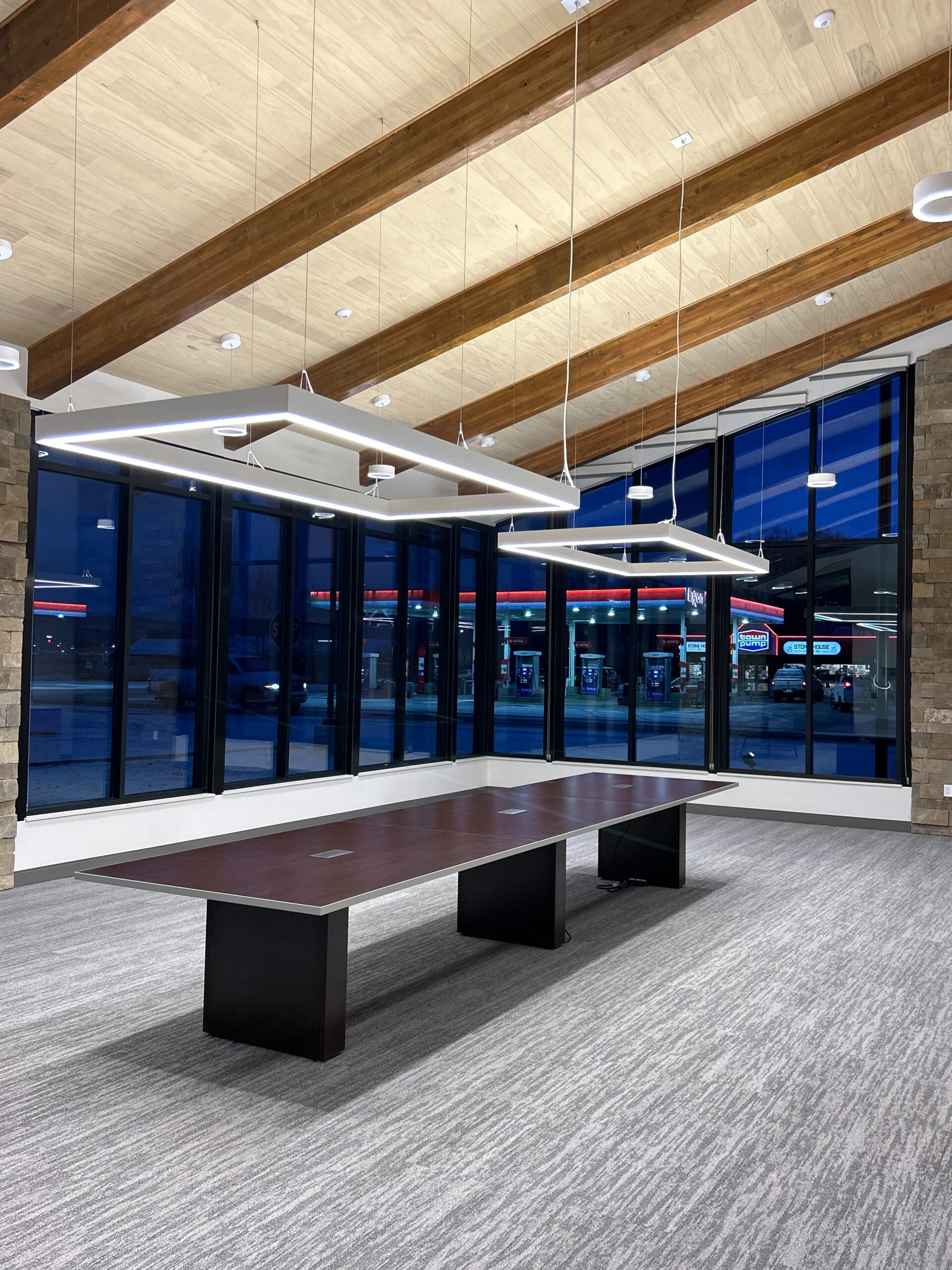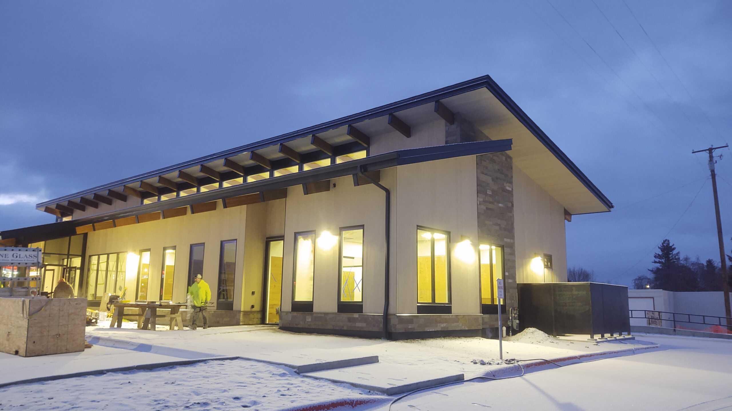 The 5,600 square foot space was originally operating as a Pizza Hut, and was redesigned to minimize utility rework, install a slab on grade vault, including secure IT rooms and onsite hot water plant, with flexibility to handle environmental conditions like snowmelt.